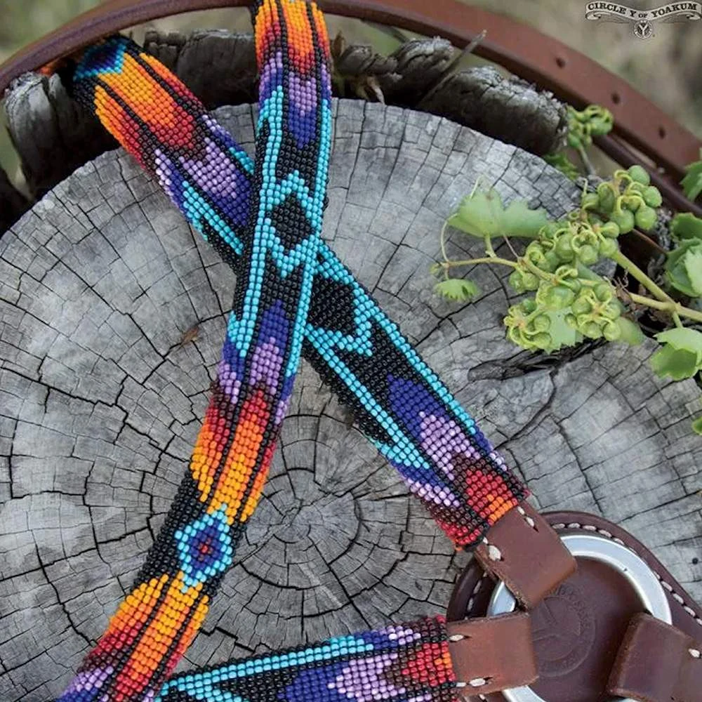 You will love the Circle Y infinity beaded wrapped browband. The browband has vibrant coloring and is a must have for the Fall.