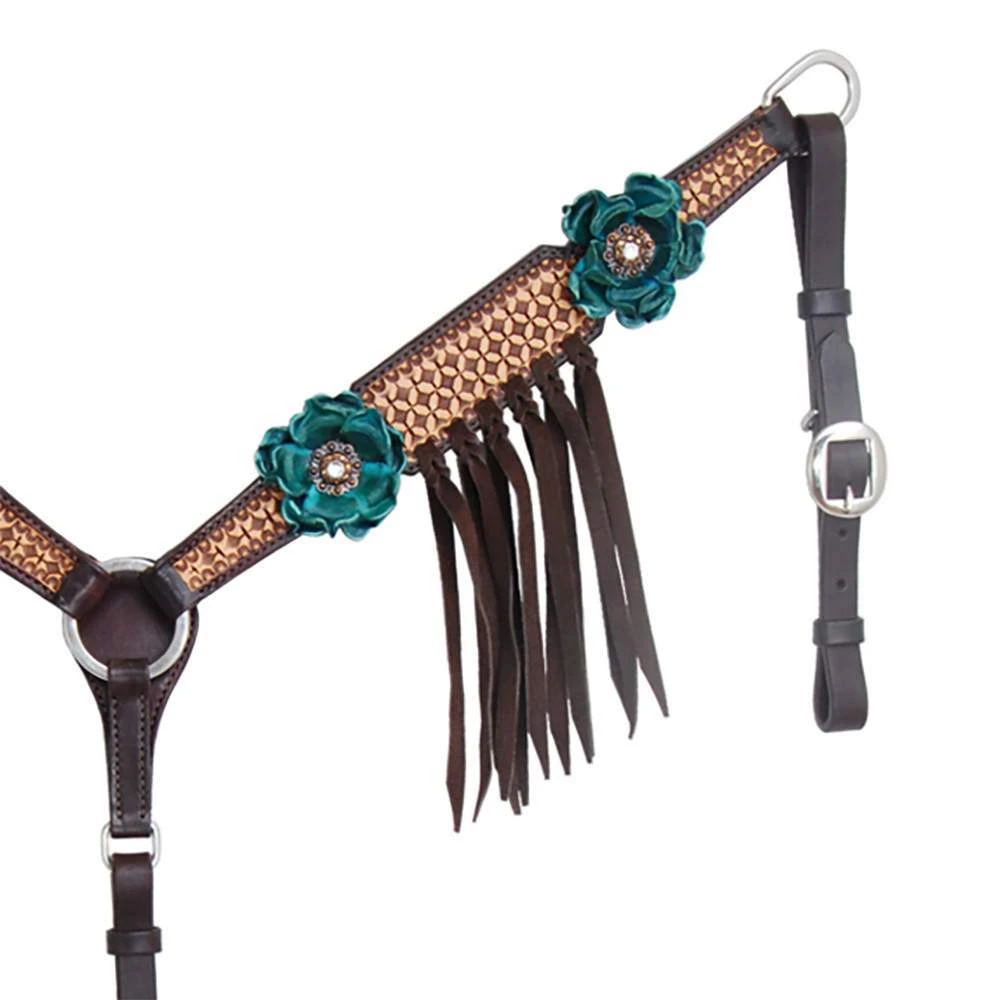 Circle Y Saddlery NRS By Vintage Turquoise Flower Breast Collar