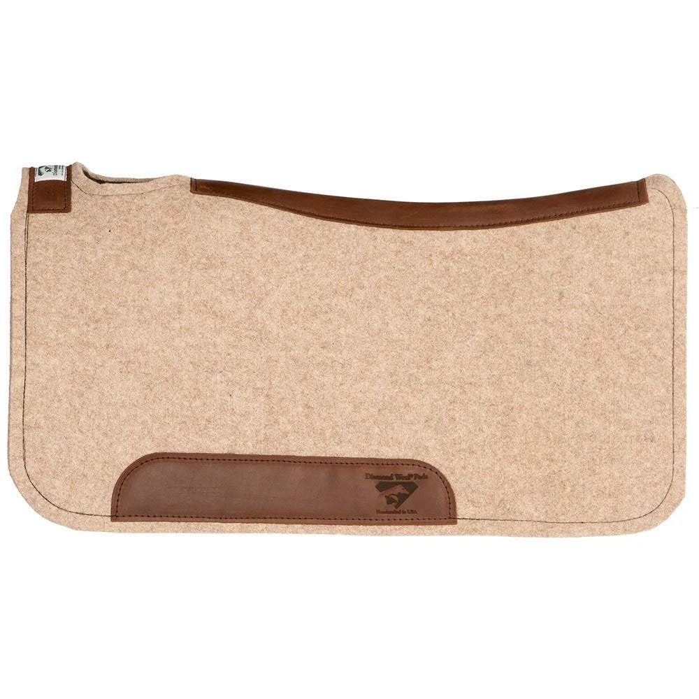 Contoured Cowboy is a unique felt that is manufactured with a tan Wool blend top combined with Virgin Brown Wool bottom. Distressed leather reinforces the contoured spine. Made with a wither relief notch and beveled cutouts under the distressed wear leathers for a close-contact fit.