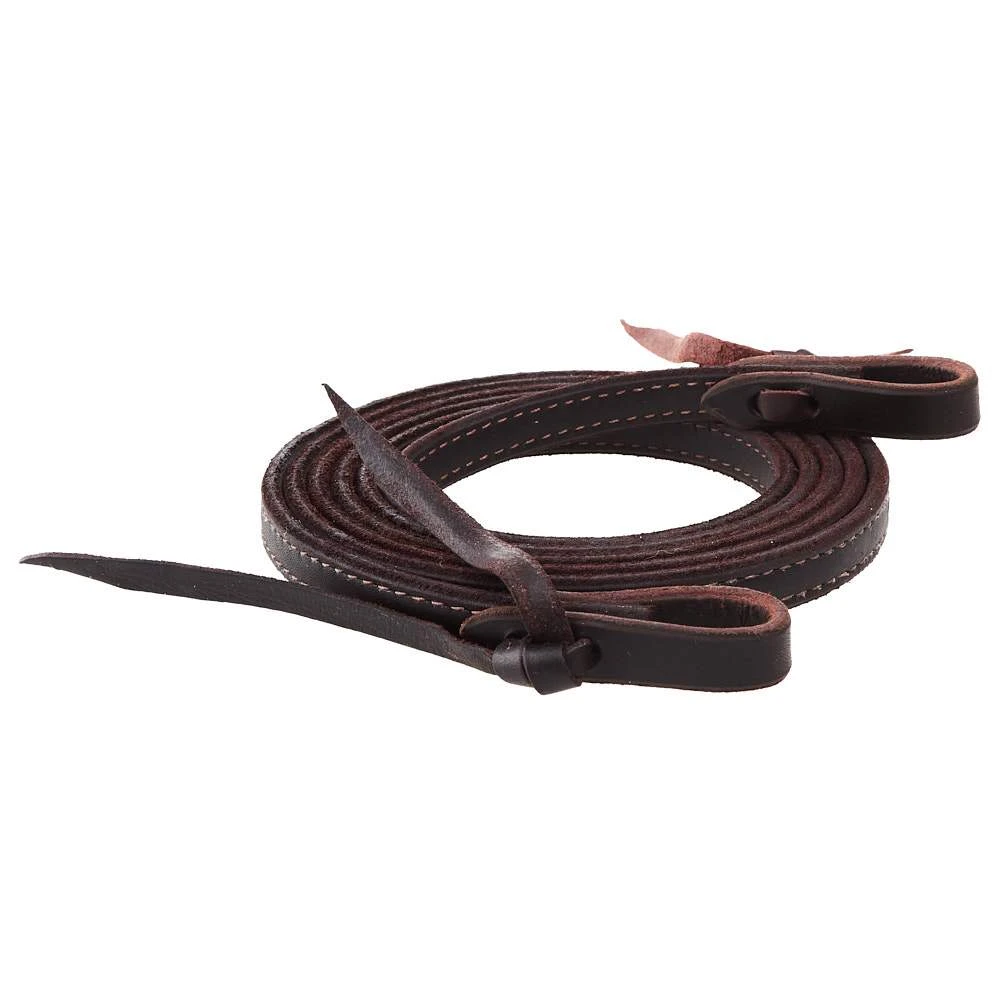 Β Martin Saddlery roping reins constructed of latigo leather that is doubled and stitched. Finished with waterloops.