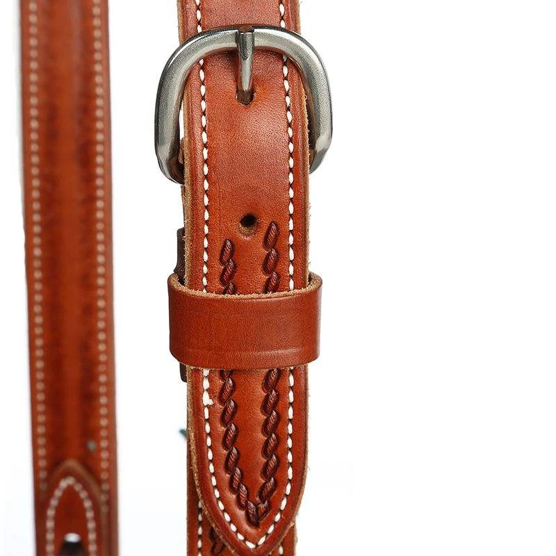 Chestnut skirting leather with rope border, stainless steel buckle and neck tie knots
