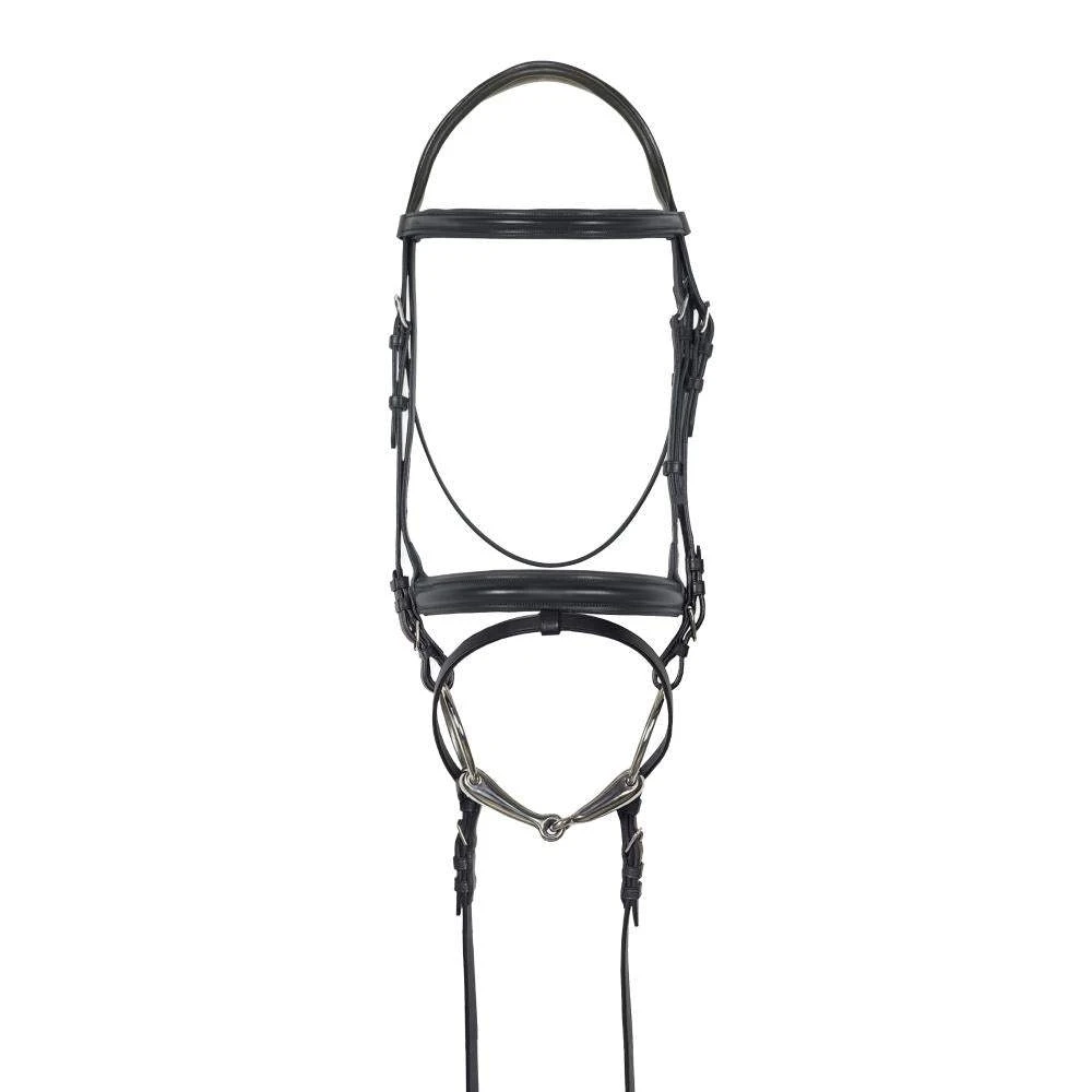 Β Β The ultimate in comfort in this hand finished Italian leather and features Ovation’s exclusive “Comfort Crown”.Β This snaffle bridle is padded and comes with a flash noseband and 5/8 inch rubberized reins.