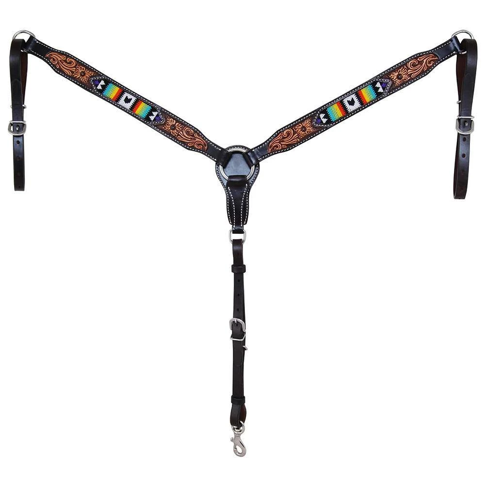 Oxbow Tuscon Beaded Tooled Breast Collar features a bright and colorful beaded inlay with two tone tooling. This style is popular with barrel racers and youth riders! 202232