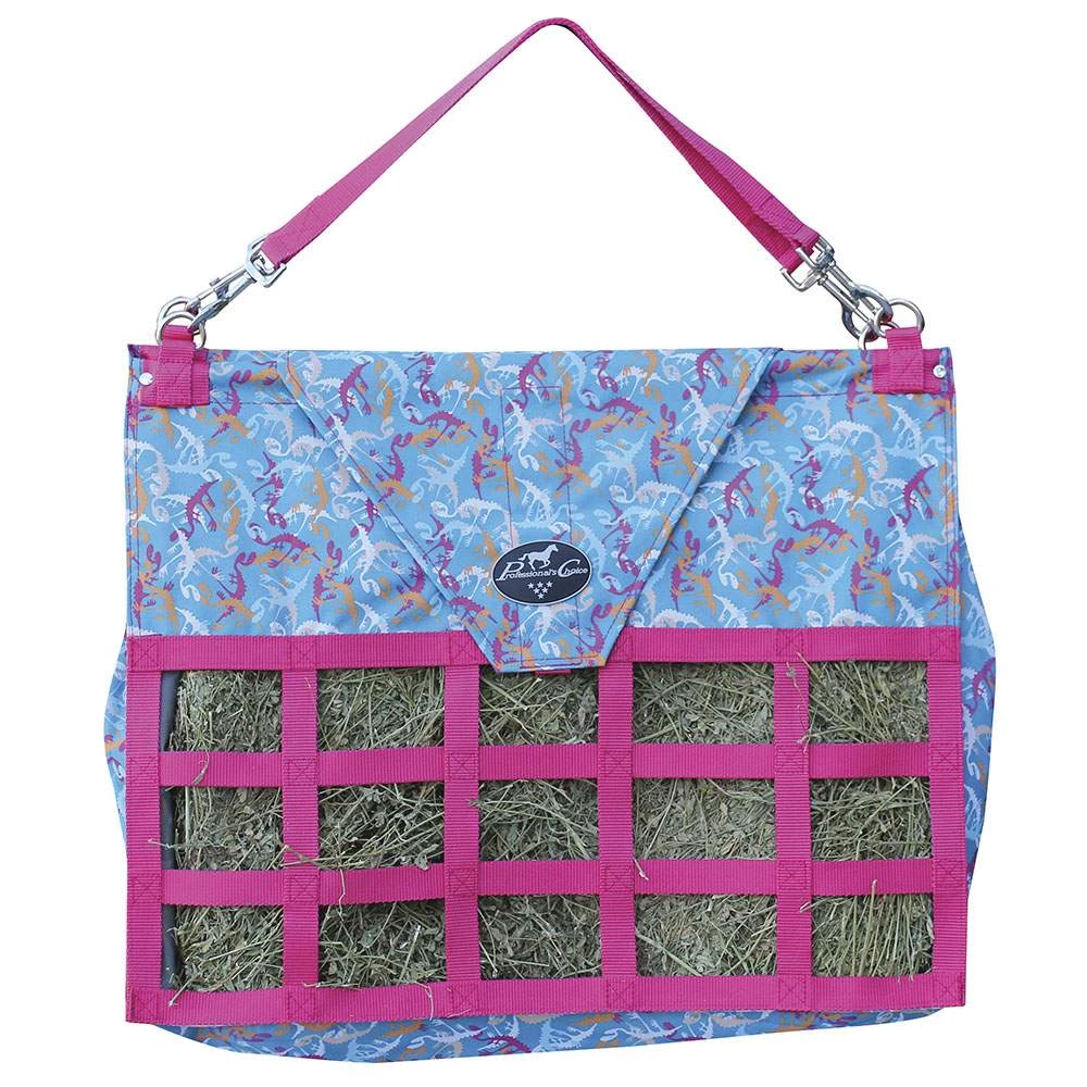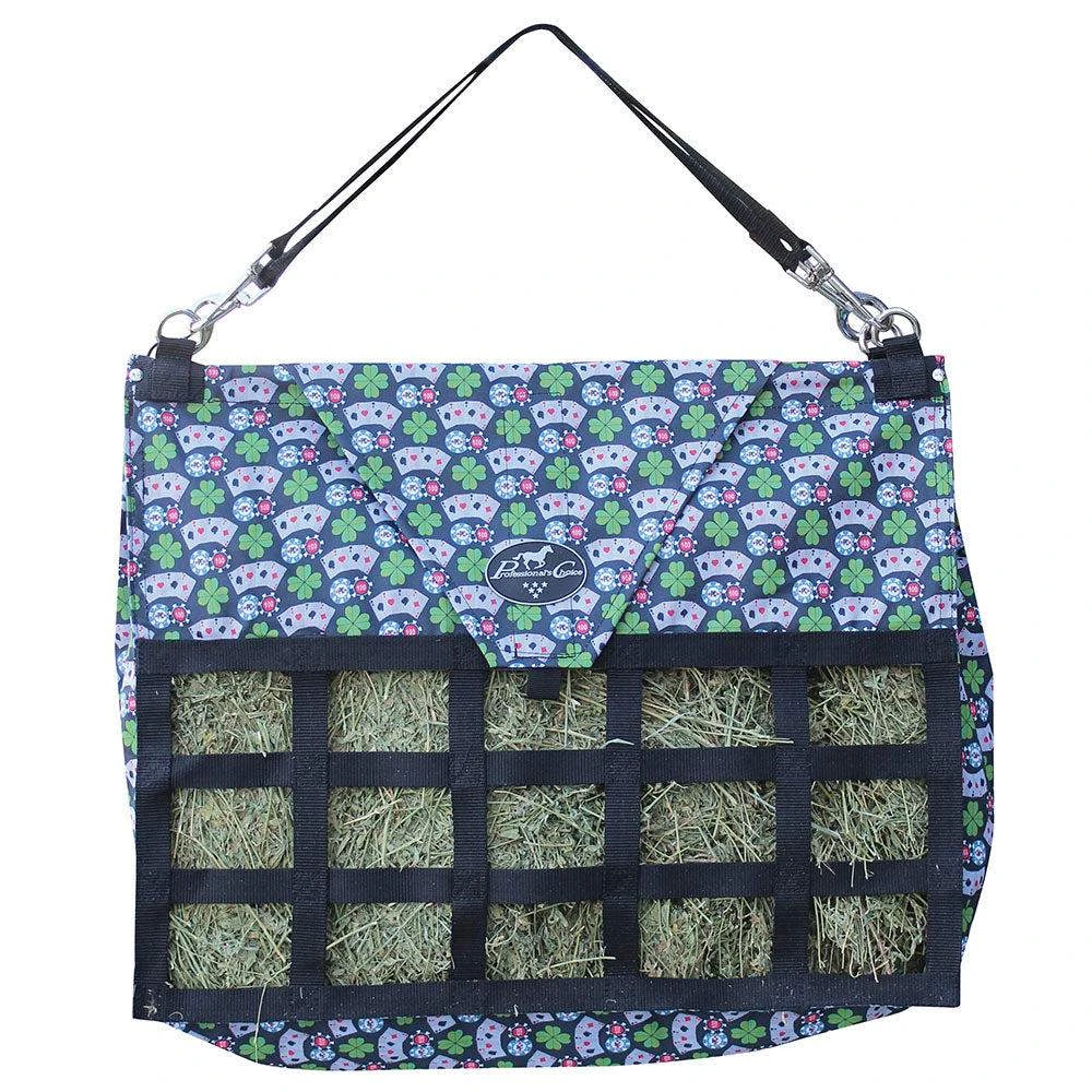 This medium feed hay bag is designed for denser hays like alfalfa. It features the same benefits as the slow feed hay bag, encouraging horses to eat slowly to allow for proper digestion and keeps them busy when tied to the trailer. This durable hay bag has a top flap closure, loads from the top, and is easily hung with detachable straps that can adjust to almost any height. 19in tall x 24in wide; 10×24 wide opening