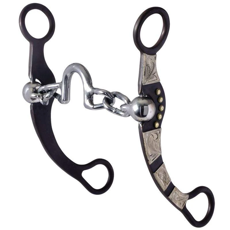 The Reinsman Pro Roper Low Port Chain Shank Bit features an eye-catching antique german silver cheek, making it a highly desirable option for riders. The 7″ medium cheek is designed with a “no pinch” ball hinge, providing effective control without causing discomfort or requiring rubber washers. The 1 3/8″ Low Port Chain Mouth offers tongue relief and evenly distributes pressure to the horse’s mouth. This bit is ideal for lifting the horse’s head and shoulders, allowing for more control during turns or when taking a stronger hold in the box, making it an excellent choice for timed events. This bit is best suited for horses who respond well to poll pressure and solid mouthpieces, and for those who prefer swivel cheeks with more leverage for neck reining. Horses who have progressed to Stage C Bits typically have a firm understanding of neck reining and respond well to cheek attachments with greater leverage. The product number for the Reinsman Pro Roper Low Port Chain Shank Bit is BIT863 and comes with a lifetime warranty.