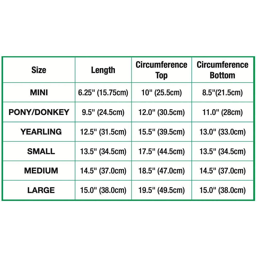 Shoofly Leggins are designed for maximum comfort and protection for your horse. Made with a flexible plastic mesh that allows air circulation, these leggins are equipped with sewn-in plastic stays to ensure they won’t sag. The secure, Velcro fasteners are easy to use, and the leggins help prevent painful insect bites and Botfly infestations. The breathable material diminishes the healing time of abrasions and wounds, and it won’t restrict blood flow or range of motion, reducing joint irritation and hoof-related problems. Measuring 15in in length and 15in circumference at the bottom and 19.5in at the top, the leggins come with a manufacturer’s warranty against defects in workmanship.