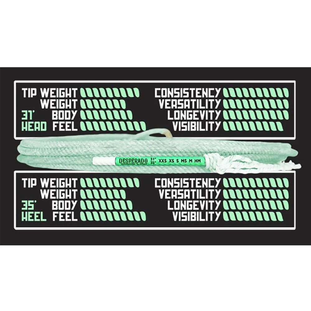 The Desperado Head Rope by Top Hand Ropes was meticulously designed and built from a specific blend of hand sourced fibers never before used in a rope. We gave immense and equal consideration to both the 5-Strand head rope and 4-Strand heel’s construction. No matter which side of the box you swing from, you’ll have everything you need to get the job done. DESPERADOHD